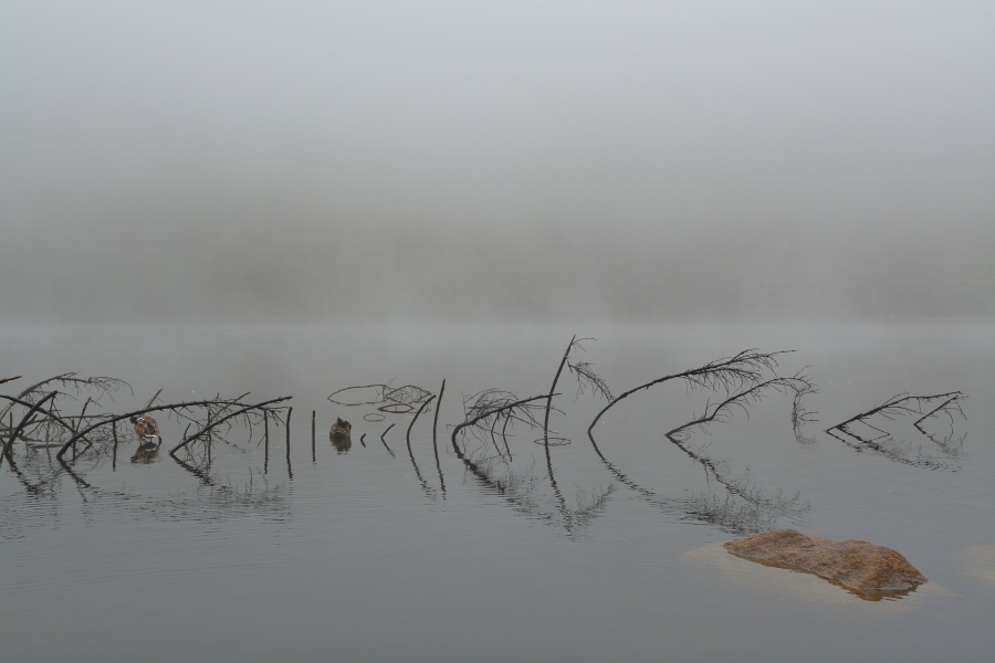 Chvílemi výrazně řídnoucí mlha slibovala odhalit zraku bezmála celé jezerní okolí, …