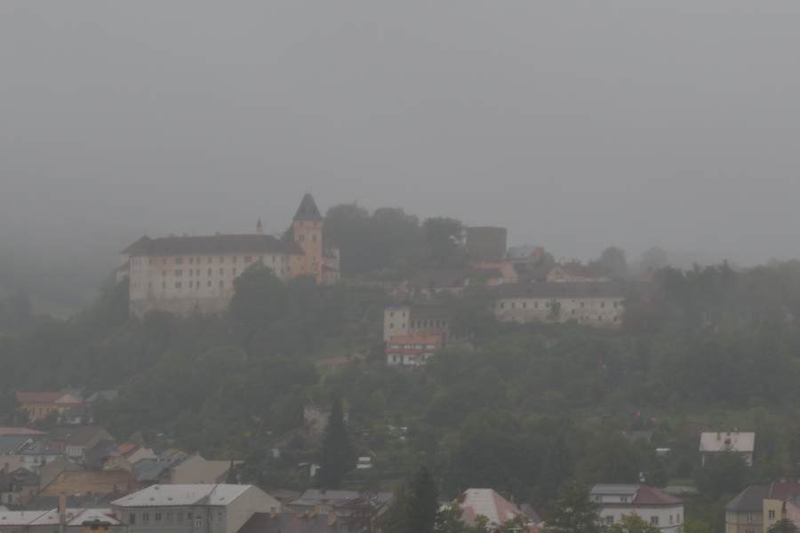 Nejhustší a současně nejsouvislejší šedobílý příkrov se natáhl vimperským směrem, ale ani tady těm, kdož se zrovna nacházejí vespod, nehrozí dlouhé trápení.