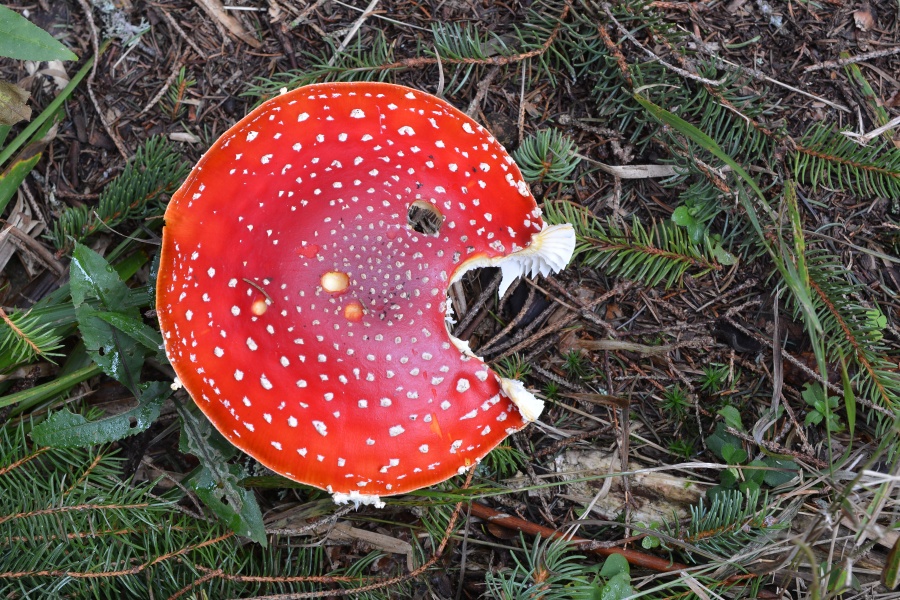 Stačí jeden podboubínský kreativní slimák a sice jedovatá, leč půvabná a většinou zcela mírumilovně se tvářící muchomůrka červená nabyde vzhledu krvelačného predátora … 🙂 . Krom tohoto zpestření cesty vzhůru je však především nutno konstatovat, že dle včerejšího očekávání se počasí skutečně nepatrně vylepšilo, ušetřilo nás dešťů a dokonce – tentokrát proti očekávání – celkem znatelně posunulo rtuť teploměru výš.