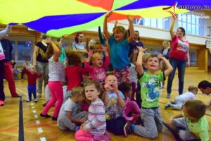 Každé pondělí se nejmenší Benjamínci scházejí v tělocvičně II.ZŠ na HÝBÁNKY, kde se seznamují s různými básničkami a říkadly, ale pořádně si i zaskotačí a