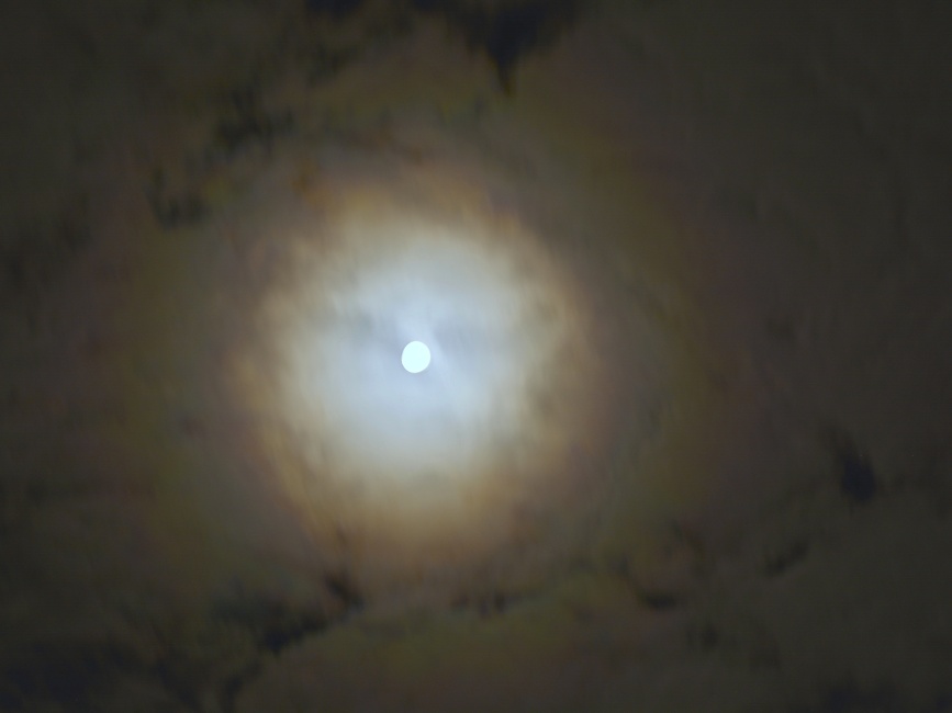 Včera v 6:22 dovršený úplněk už zase pozvolna ubývá – to však zatím prozradí jedině fotografie. Pouhé oko tak jemnou změnu, viditelnou v pravé spodní čtvrtině, ještě na noční obloze neregistruje, stále vnímá plnohodnotný kotouč. Zásluhou jasné měsíční záře ale naopak pozná, že ani po týdnu od ničivé vichřice, která zatarasila prakticky všechny obvyklé cesty na Boubín, nedostaly motorové pily pokyn k jejich zprovoznění. Přivstat si o hodinku dříve tedy rozhodně nebylo v zájmu zastižení východu sluníčka od věci.