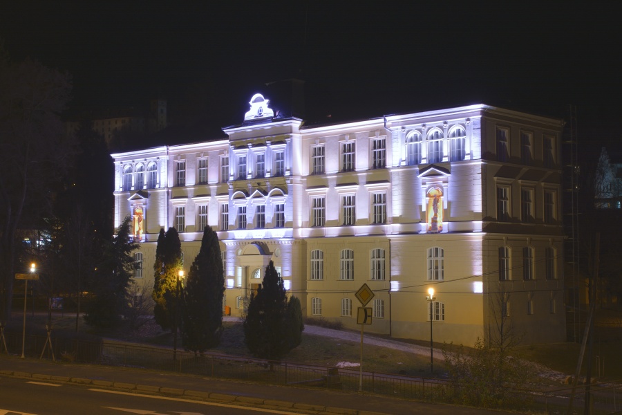 Největšího překvapení se však nejen Vimperští, nýbrž dozajista i všichni, kdož jen zrovna projížděli Pasovskou a následně Pražskou ulicí (jakož samozřejmě i opačně), dočkali po setmění. Poprvé se totiž rozzářilo ve všech variantách zbrusu nové bohaté osvětlení sídla prvního stupně „Masaryčky“, všem odjakživa známého jako „škola v parku“, jejíž novou fasádu jsme si tu představili již 8. listopadu. Jistě by se nebylo možno divit, kdyby této novinky neznalí cizí návštěvníci považovali takto skvostně nasvícenou budovu přinejmenším za honosné šlechtické sídlo.