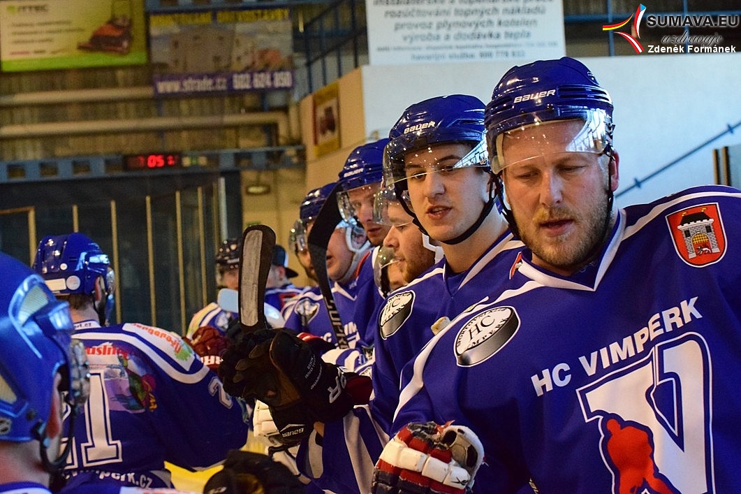 Vimperští se však dokázali na poslední třetinu zkoncentrovat a dvěma rychlými brankami, o něž se ve 41. a 42. minutě postarali Radek Sitter a Rudolf Suchánek, šli znovu do vedení – 5:4. Za deset minut přidali domácí hokejisté další dva góly, když se podruhé v zápase trefil Hanzal a po něm Tomáš Tupý. Tábor poté v přesilové hře stačil ještě korigovat výsledek na konečných 7:5 pro Vimperk.