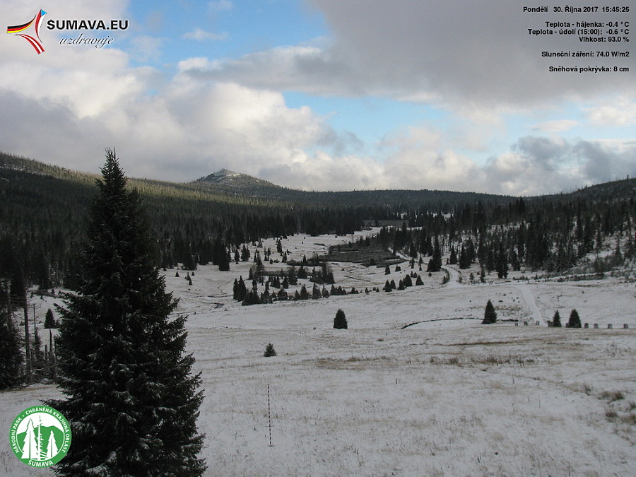 Pod bod mrazu spadly teploty i na vrcholových stanicích, Velký Javor hlásil -3,8°C nebo Plechý -3,6°C.