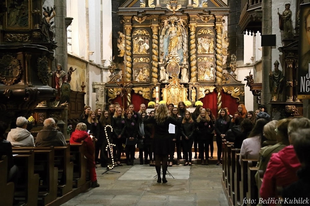 Několik desítek lidí usedlo ve středu 8. 11. v podvečer do kostelních lavic svatého Jakuba v Prachaticích, aby vyslechlo „dušičkový koncert“ pěveckého sboru Fontána ze SPgŠ Prachatice. Krátce po 19. hodině se do naprosté tmy rozezněly něžné dívčí hlasy. Atypicky nastoupený soubor po stranách kostela vytvořil působivý prostorový zvukový efekt. Postupně rozsvěcované svíčičky „plující ve vzduchu“ směrem k presbytáři osvítily interiér kostela a navodily duchovní až tajemnou atmosféru. V citlivě jemném provedení písní si hosté, již za plného nasvícení, vychutnali velmi zajímavý a různorodý repertoár pěveckého sboru Fontána. Svými precizními sólovými výstupy a instrumentálními doprovody obohatily koncert např. Tereza Gondeková, Tereza Slavíková, Anna Malechová, Mgr. Martina Pivoňková, Mgr. Petra Sovová, klavíristky Veronika Pešková, Simona Vacušková a Karolína Dejmková. Kytarové doprovody obstarali Mgr. Eva Nováková a Tomáš Mayer.