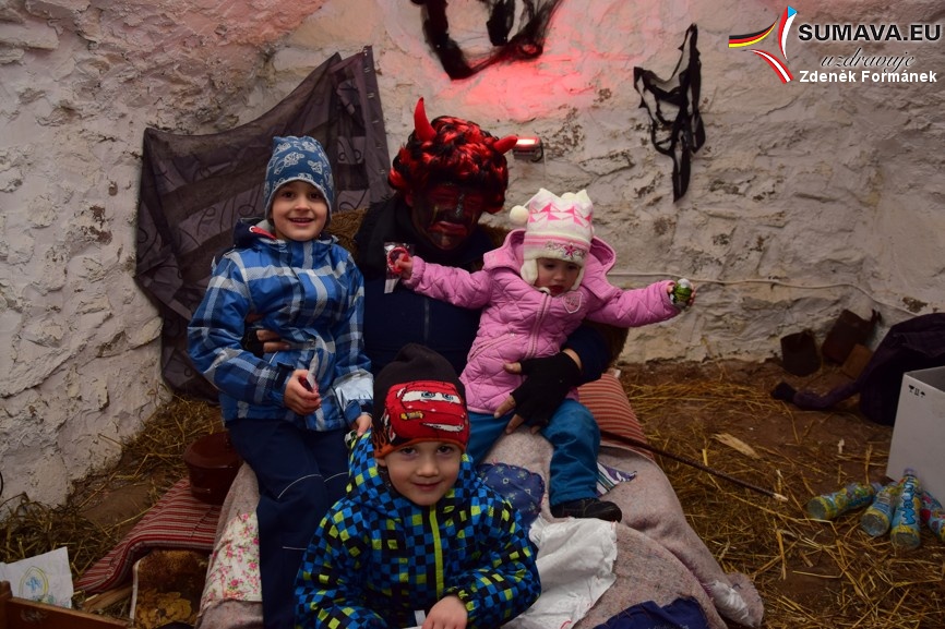 Čerti a jejich doupě. Páteční podvečer patřil čertům a zlobivým dětem. Ale podle zaručených informací se všechny děti vrátily v pořádku domů.