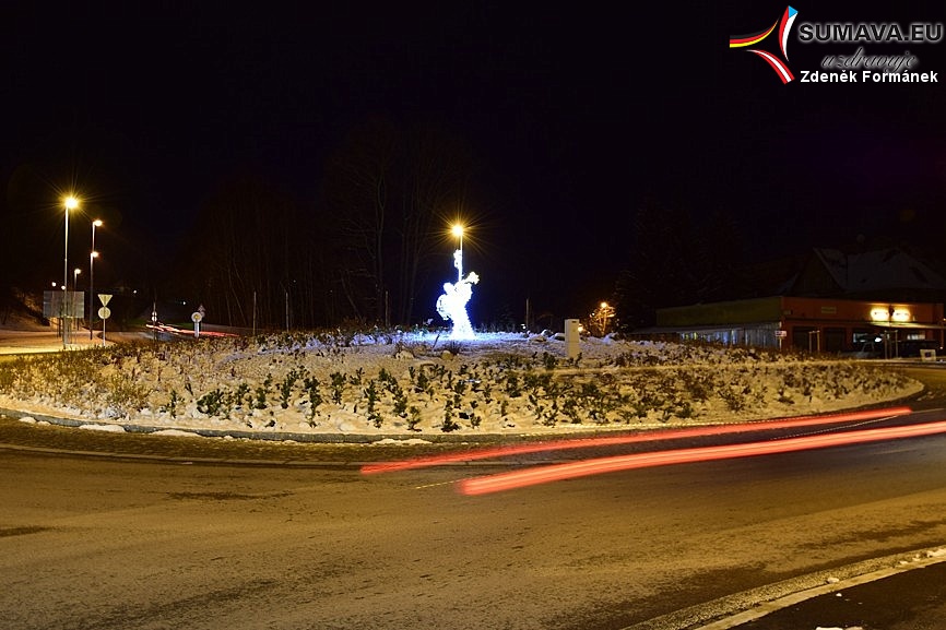 Novou vánoční výzdobou se může pochlubit jediný kruhový objezd