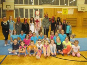 Zase přišli Důstojný Mikuláš, překrásný anděl a rodinka čertíků nevynechali ani děti na tréninku sportovní gymnastiky. Cvičení dětí se jim moc líbilo
