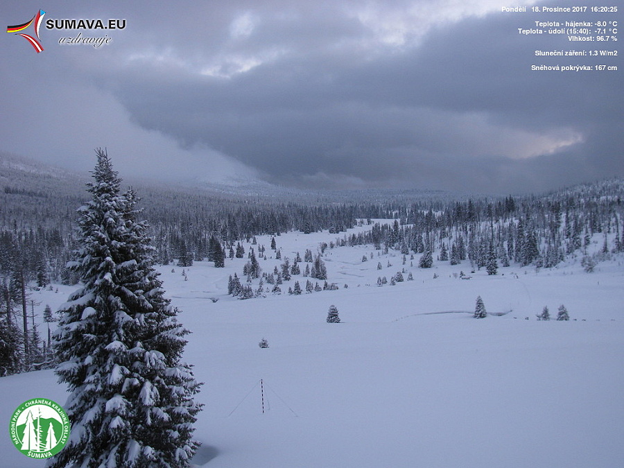 V prosinci sice vládlo na Šumavě zimní počasí, dnů se silnějšími mrazy bylo ale velmi málo. Jediná opravdu „mrazivá noc“ byla z 18. na 19. prosince, podrobněji jsme o tom informovali v článku Nejchladněji na Žďárku -28,7°C. V mrazových kotlinách teploty spadly pod -20°C, v několika případech i pod -25°C. Většina stanic zaznamenala teploty mezi -10°C až -20°C.