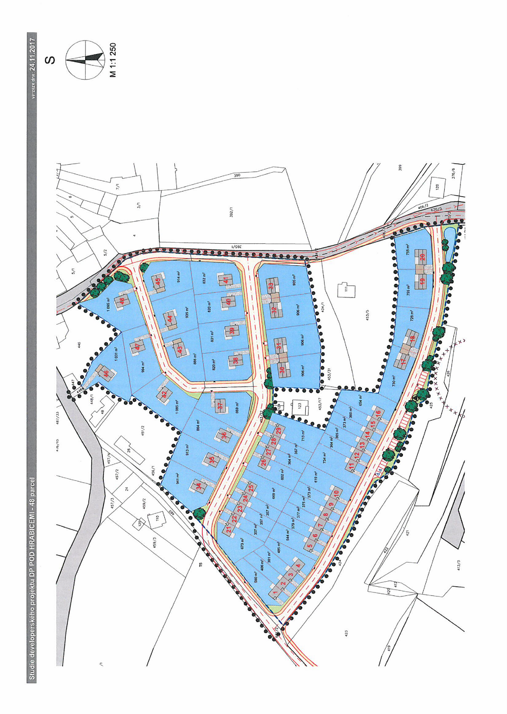 Původní – stále platné rozdělení stavebních pozemků pod Hrabicemi.