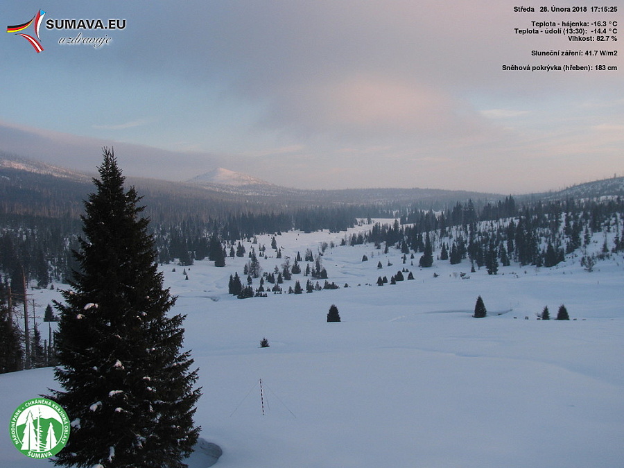 Měsíc únor byl teplotně podprůměrný a to hlavně díky poslední dekádě měsíce. Na samém konci klimatologické zimy tak byly naměřeny nejstudenější dny. V přílivu artického vzduchu od východu převládala na Šumavě oblačná až zatažená obloha, díky tomu tak nebyl pokles teplot pod hodnoty -30°C reálný. V samém závěru měsíce došlo i na vyjasnění, ale silnější vítr opět nedovolil, aby teploty výrazněji poklesly.