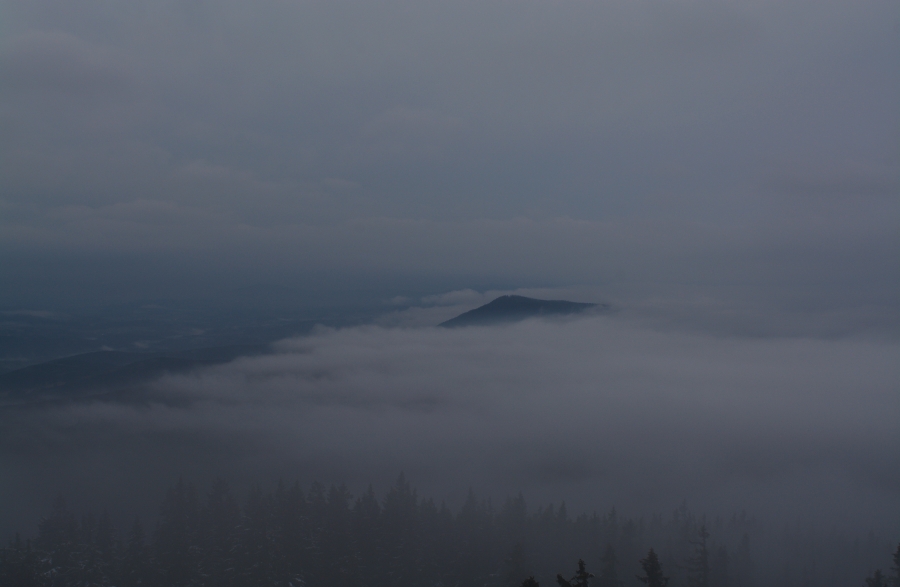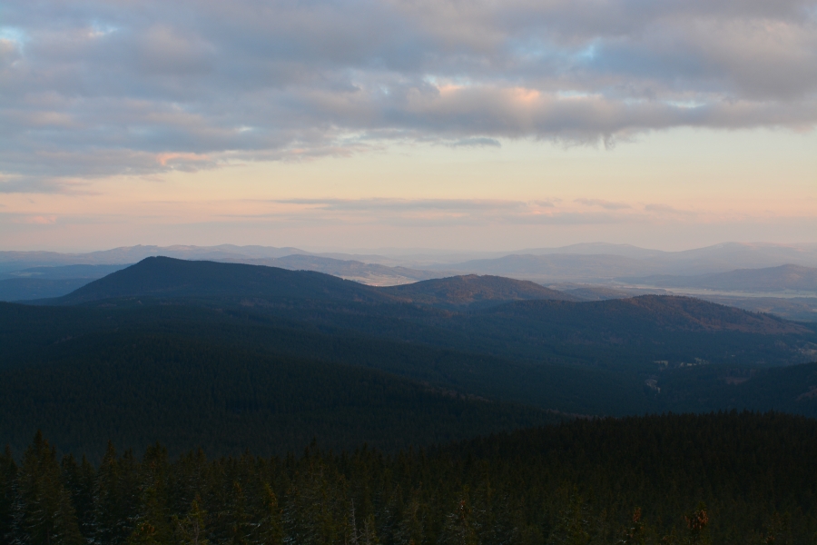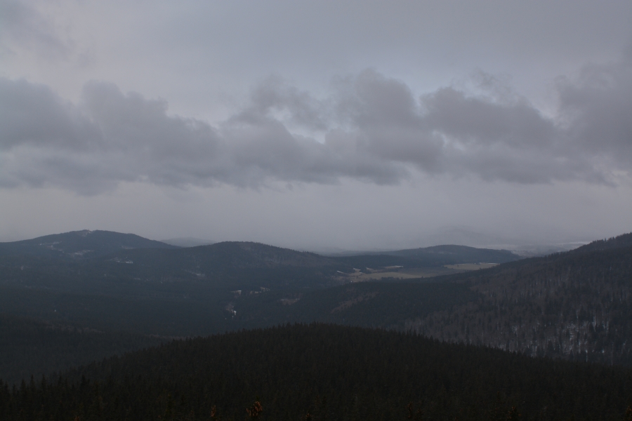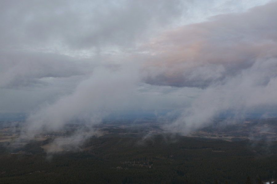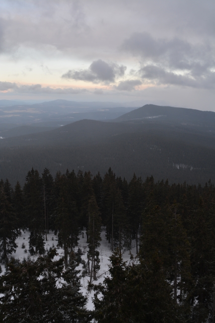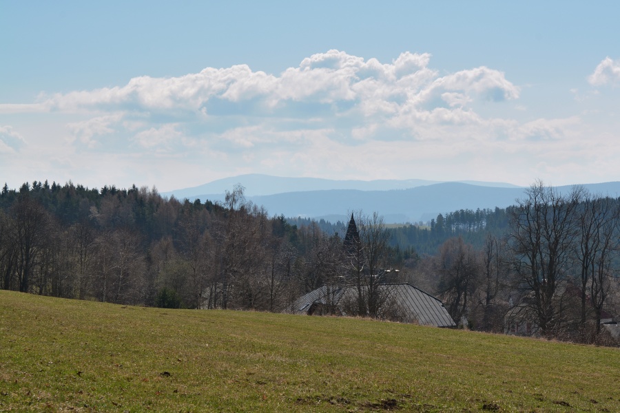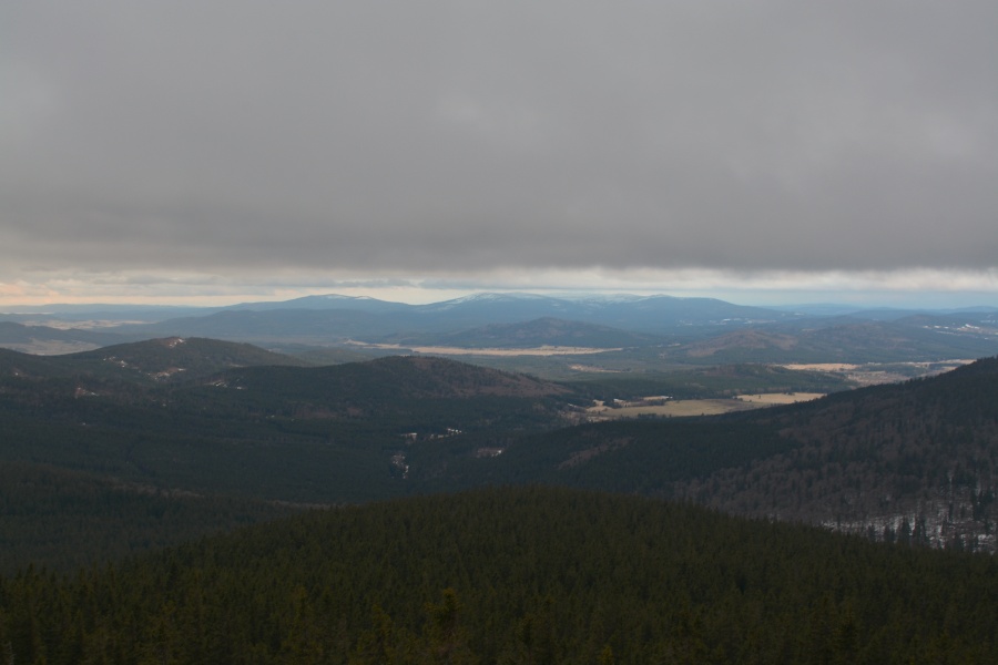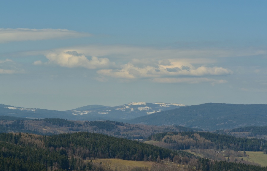 … jíž namísto Alp, dle očekávání touto dobou až na vzácné výjimky vesměs ukrytých, zase jednou dominují na opačné straně stejně vzdálené Krušné hory v čele se svým nejvyšším vrcholem – Klínovcem.
