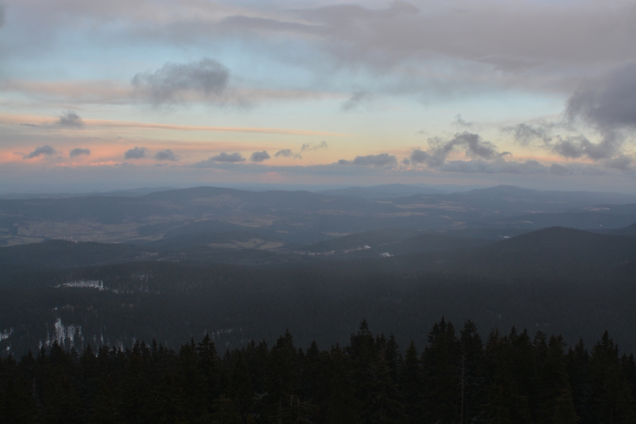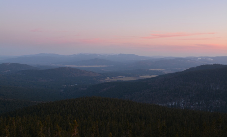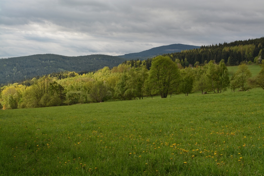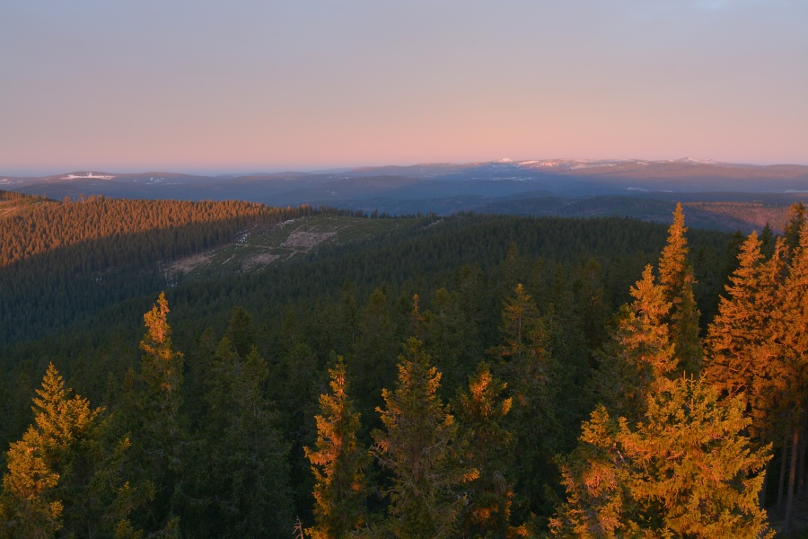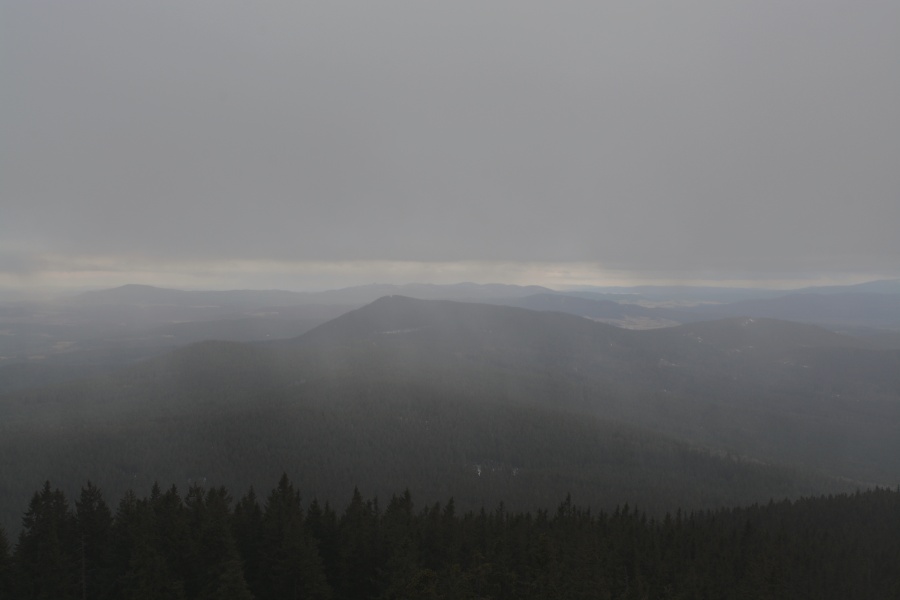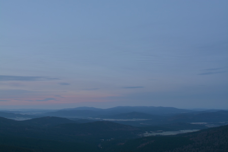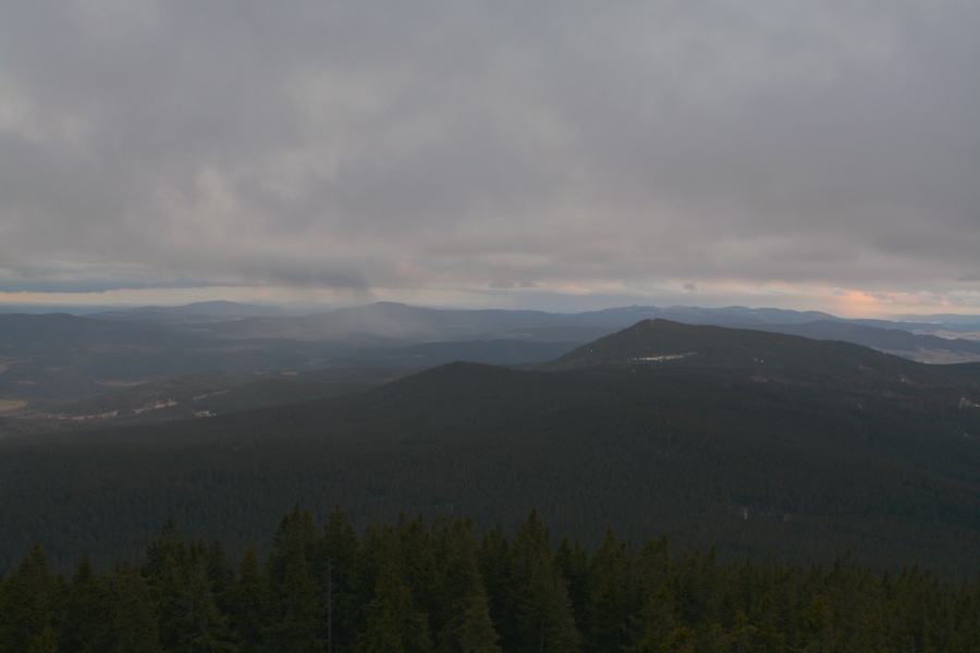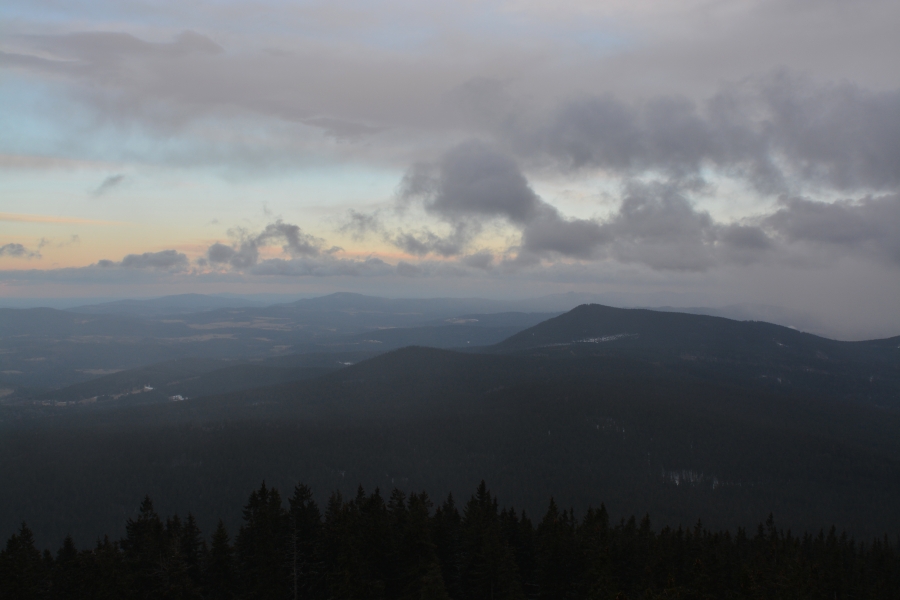 … jíž namísto Alp, dle očekávání touto dobou až na vzácné výjimky vesměs ukrytých, zase jednou dominují na opačné straně stejně vzdálené Krušné hory v čele se svým nejvyšším vrcholem – Klínovcem.