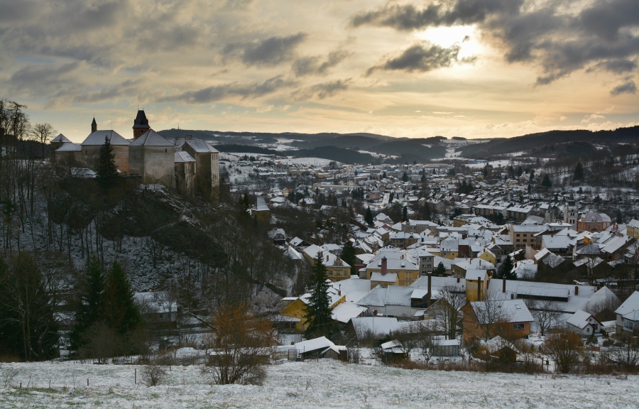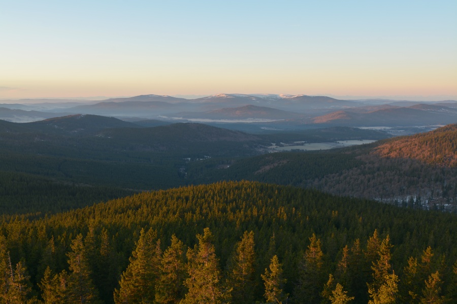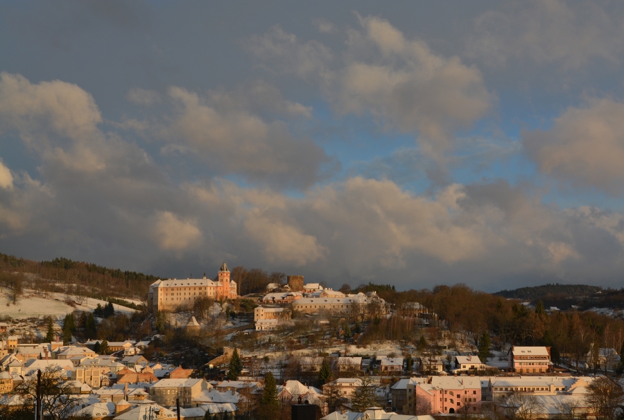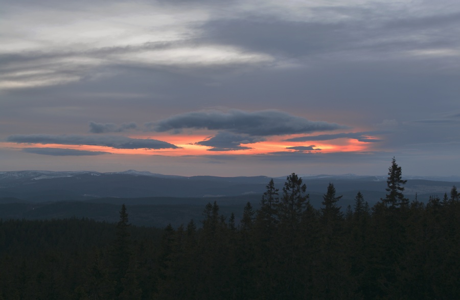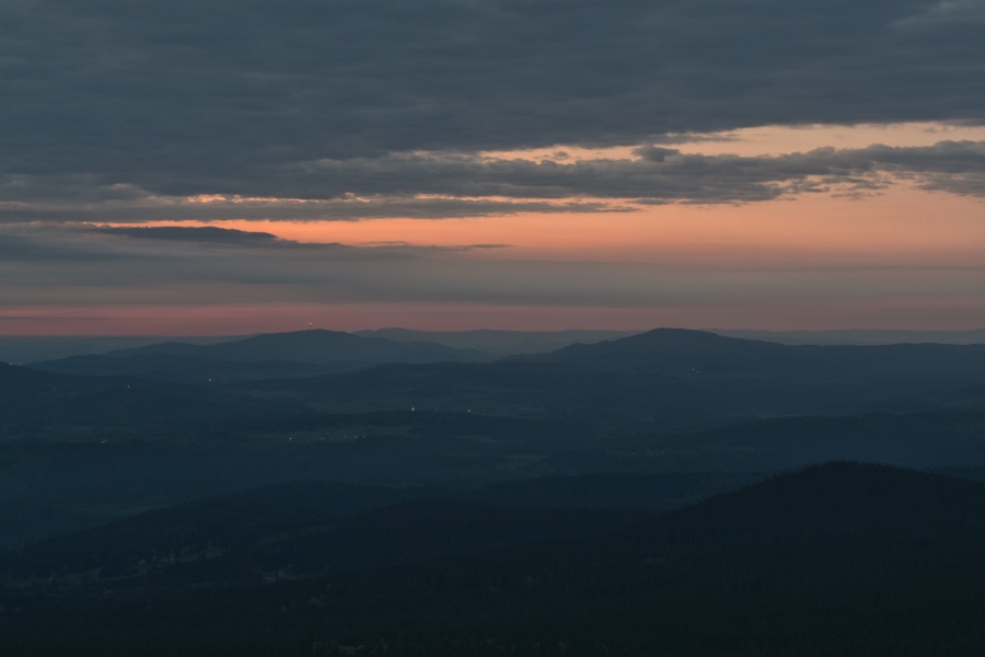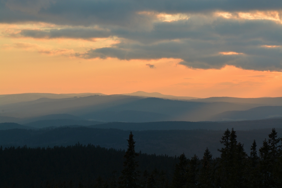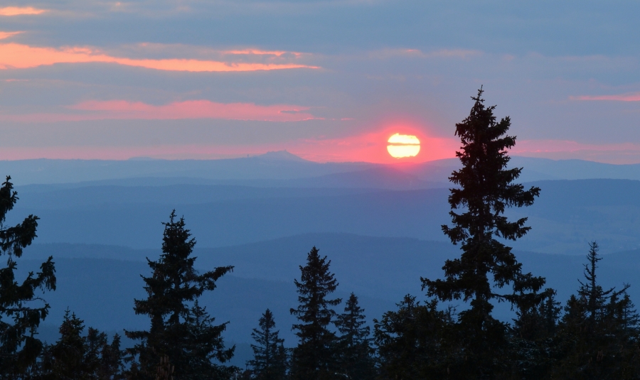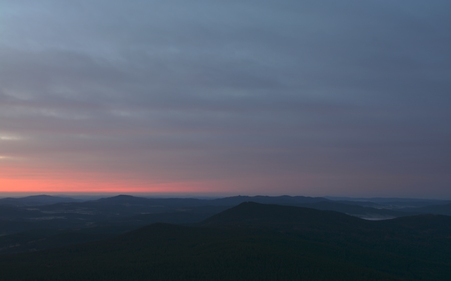 … jíž namísto Alp, dle očekávání touto dobou až na vzácné výjimky vesměs ukrytých, zase jednou dominují na opačné straně stejně vzdálené Krušné hory v čele se svým nejvyšším vrcholem – Klínovcem.