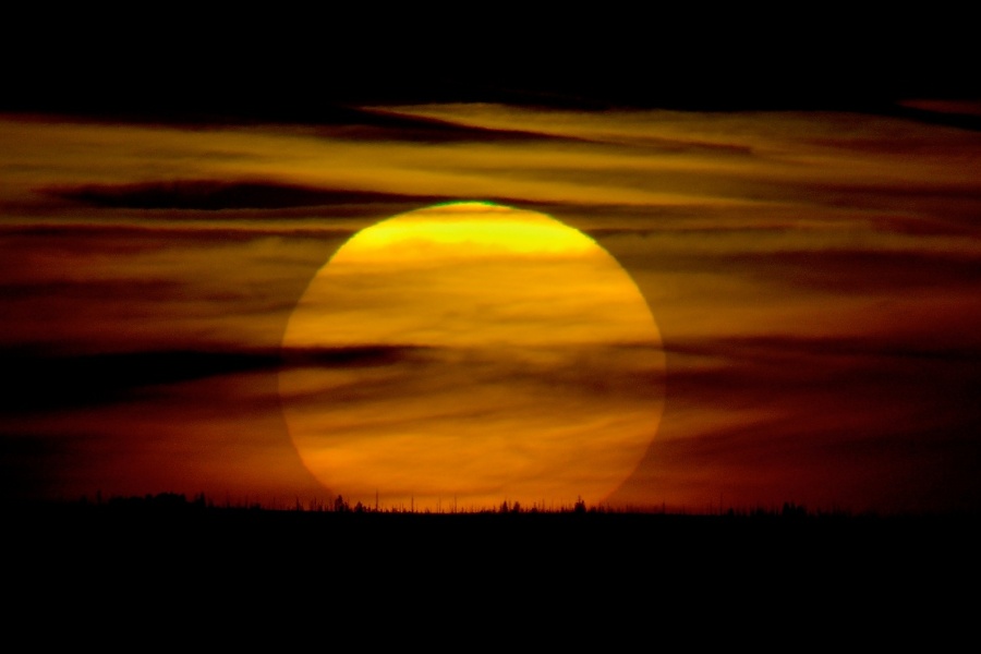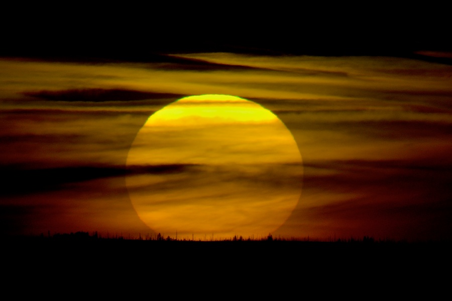 Dokonale kulatý tvar vycházejícího sluníčka svědčí o zcela čisté, bezmračné obloze, …