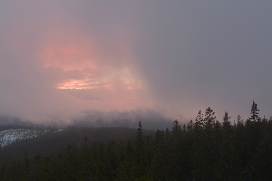 Počátku druhého jarního měsíce meteorologové předpovídali především silný vítr. Skutečně se nejednalo o apríl, od samého rána co chvíli fičelo jedna radost. Jen v jediné věci předpověď (tedy aspoň v našich končinách) poněkud kulhala, a sice v odhadované síle větru. Ale té se budeme věnovat později, teď je zapotřebí dodat, že velikonočně nedělní odpoledne nadělilo Vimperku nefalšované aprílové počasí, tj. střídání slunečných okamžiků se smíšenými přeháňkami. Dalo se očekávat, že na Boubíně se v tomtéž čase bude jednat pouze o sněhové, což v podvečer potvrdily již Basumské louky, včera ještě jarně holé včetně okolních lesů.