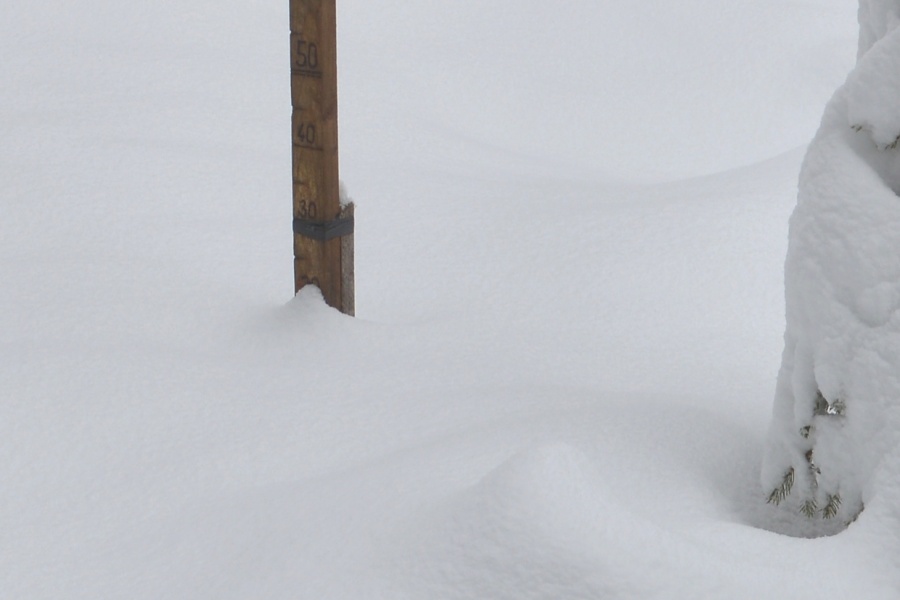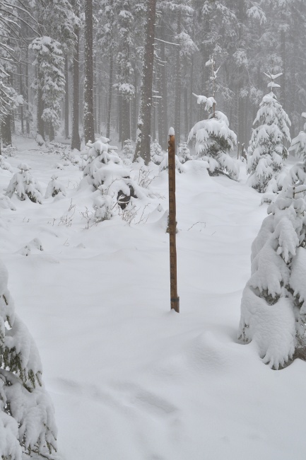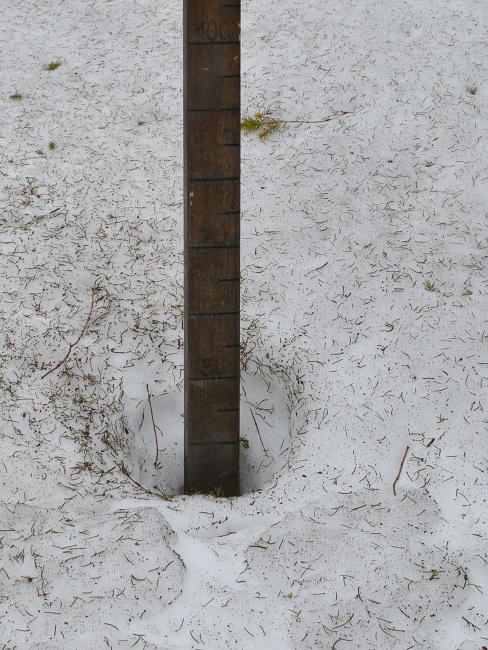 … jemuž se spolu s předešlými srážkovými epizodami podařilo za odpoledne obohatit zdejší sněhovou pokrývku čerstvými dvěma centimetry.