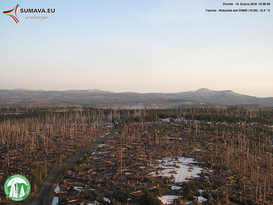 Nadprůměrně teplé počasí, které připomíná spíše konec května než polovinu dubna, doslova „zamávalo“ se sněhovou pokrývkou. Sněhu už na Šumavě moc neleží, souvislá pokrývka leží už jen nad 1200 metrů n.m. Výjimkou je třeba údolí Březníku, kde tradičně souvislá sněhová pokrývka vydrží díky návětrné lokalitě a mrazové kotlině déle. Sněhu utálo v horských polohách kolem 40 cm za týden.