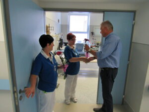 Ředitel sušické nemocnice poděkoval sestřičkám za jejich práci Hezkou květinou poděkoval ředitel Nemocnice Sušice Jaroslav Kratochvíl a zdejší hlavní sestra Martina Kolářová všem