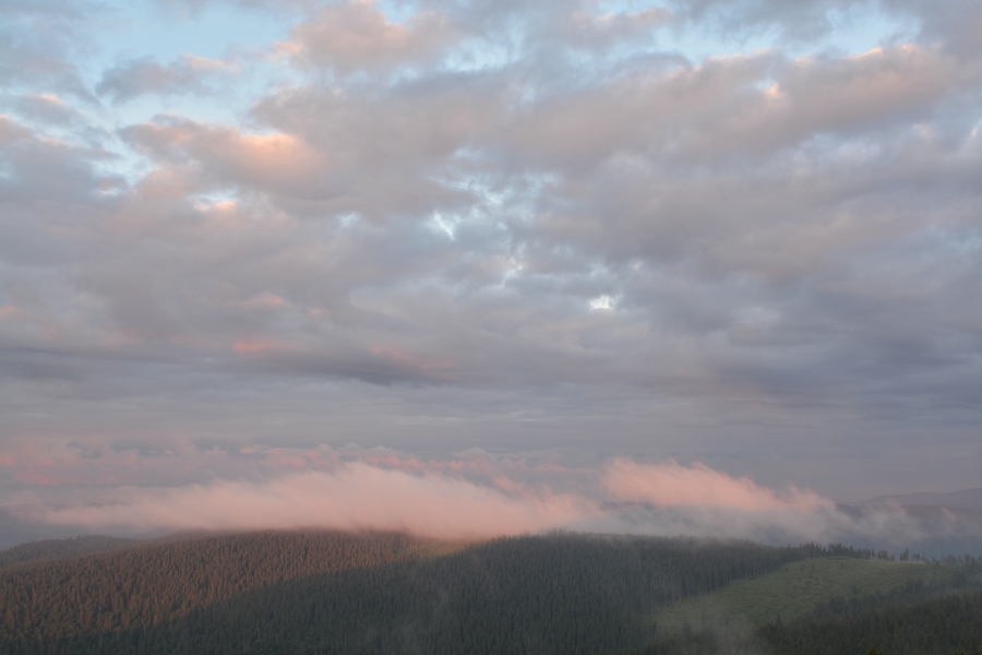 … a ještě více pak známým alpským směrem. To, co se nám tu nabízí k vidění, sice není žádný z charakteristických, tolikrát již zde pozorovaných štítů, nýbrž pouhý nasvícený mrak, ale jeho nesporná tvarová příbuznost s horskými velikány jednoznačně vypovídá o tom, že právě oni mají zásluhu na této jeho modelaci, sami ovšem zamaskováni za ním a jeho méně výraznými sourozenci.