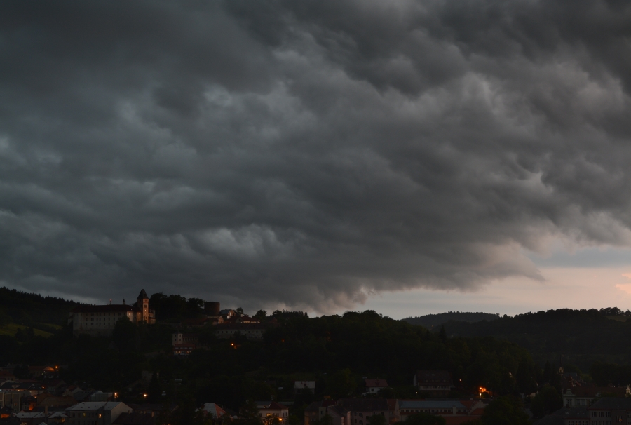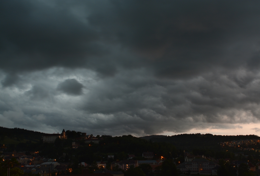 … a to včetně noci, kdy v plné jihozápadní šíři překročila hranice mohutná bouřková vlna, svým rozsahem podle radaru zatím nejmocnější ze všech předešlých. Vimperk se sice dočkal velmi slušného lijáku, ale bouřka jej pozdravila jen sérií blýskavic, neb jako téměř vždy naše město uctivě obešla.