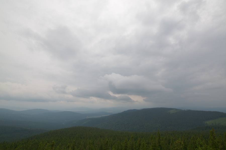 Pohled z věže přinesl dvojí náladu – z jihovýchodního směru stále podmračenou, …