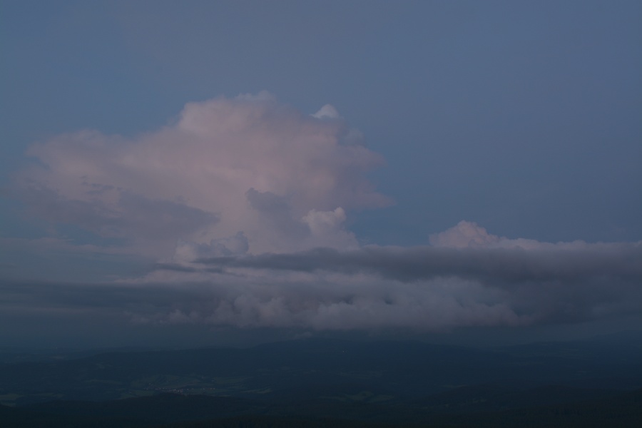 Vzrůstající tma dala náležitě vyniknout občasným blýskavicím, odehrávajícím se v nejmenším z dílčích útvarů pomalu mizícího cumulonimbu. Na Boubíně nebyly k zaslechnutí sebemenší náznaky hřmění, ale směrem od Českých Budějovic tomu mohlo být jinak – jak již bylo řečeno úvodem, stále hledíme bouřce do zad. Šance na dokonalejší úlovky však nadále žijí, neboť i celý první červnový víkend by se měl nést v podobném duchu – tedy slunečno a dusno střídané dešti, blýskáním a hřměním. Namístě je tedy jako vždy trpělivost 🙂 .