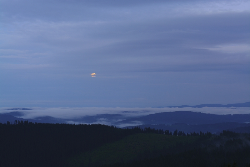Večerní cesta na Boubín nicméně probíhala za příjemného vyjasnění, v němž sluníčko dostalo i příležitost k vytvoření pravého parhelia.