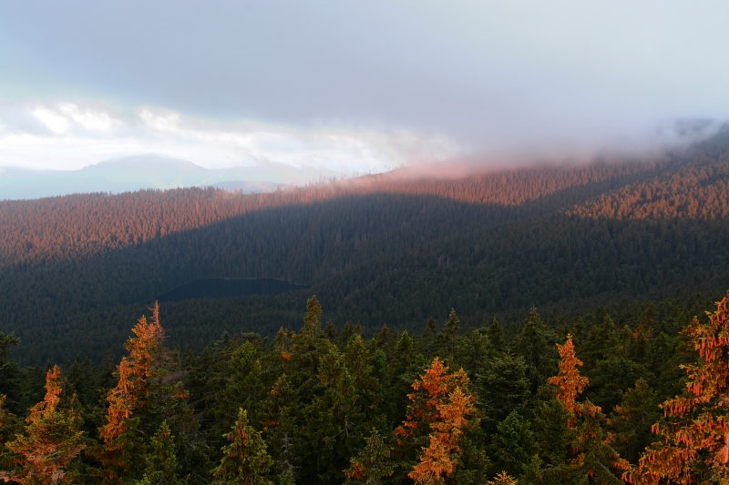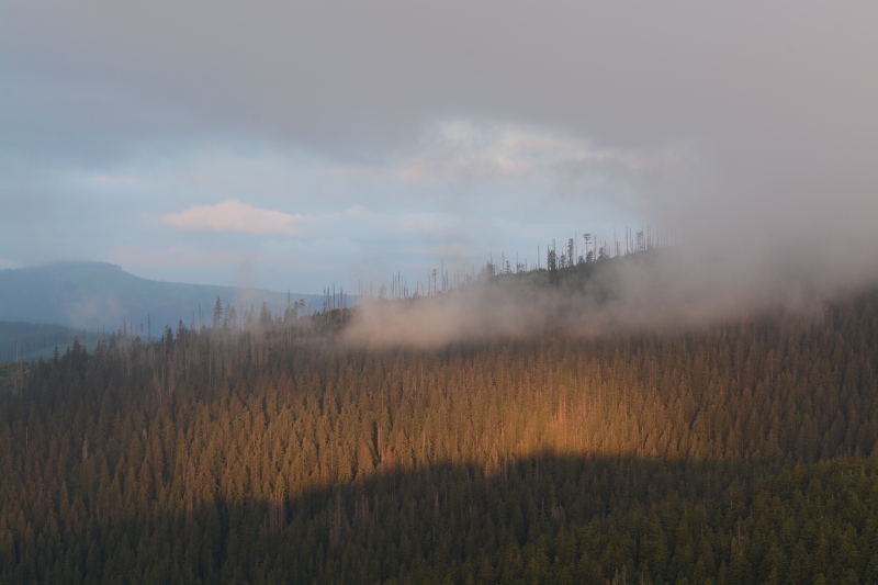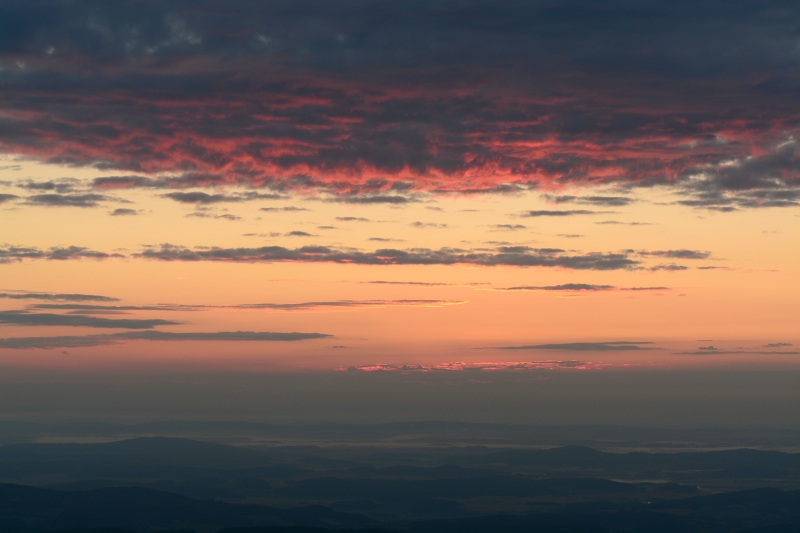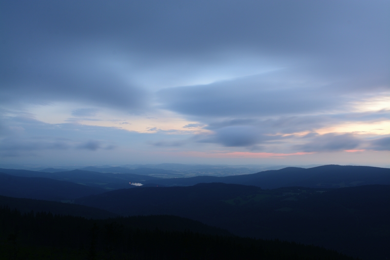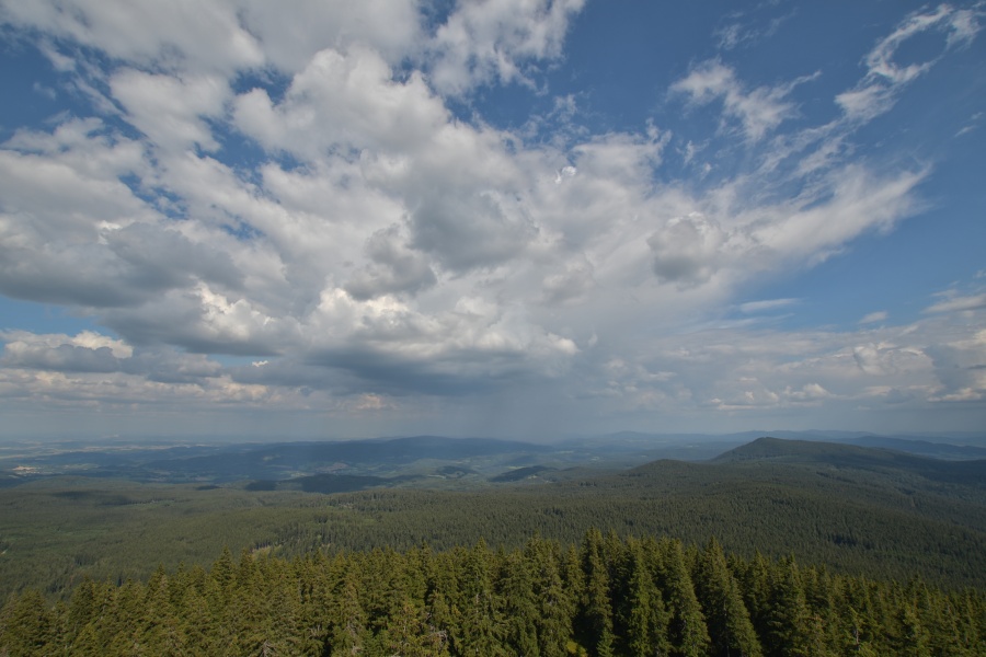 Startuje možná nejteplejší týden tohoto léta. Za opět téměř nesnesitelného dusna se obloha nad Vimperkem přes den chvílemi doslova i černala kupovitou oblačností, v níž nescházely ani bouřkové kovadliny. To vše ale do večera bez jediné kapky či aspoň náznaku zabrumlání kompletně zmizelo. Z Boubína se tak otevřel pohled …