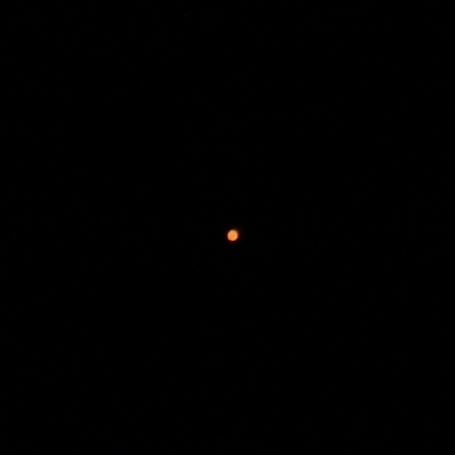 Mimořádným jevům však dnešní noci zdaleka není konec – spolu s Měsícem můžeme sledovat také planetu Mars, nacházející se aktuálně v opozici se Sluncem, a dosahující tak její zásluhou tzv. maximální hvězdné velikosti – tedy své nejsilnější zářivosti na obloze. Posledního červencového dne se pak „rudá planeta“ nejvíce přiblíží k Zemi – bude ji od nás dělit „pouhých“ 57,59 milionů km 🙂 . K úplnému vylíčení dnešní vzácné noci zbývá dodat, že již tak dosti slavnostní oblohou co chvíli prolétl meteorit – nepředvídatelný, neočekávaný, a proto zde fotograficky nezachycený. V každém případě ale evokoval blížící se srpnový čas Perseid.
