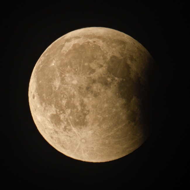00:19:37 – teď by podle astronomických výpočtů mělo být zatmění již půl minuty za námi (00:19:00), ale pravý okraj Měsíce se pořád ještě nachází v temnotě. Obloha je již zcela čistá, rozhodně se tak v daném okamžiku nejedná o působení oblačnosti, nýbrž stále o zemský stín.