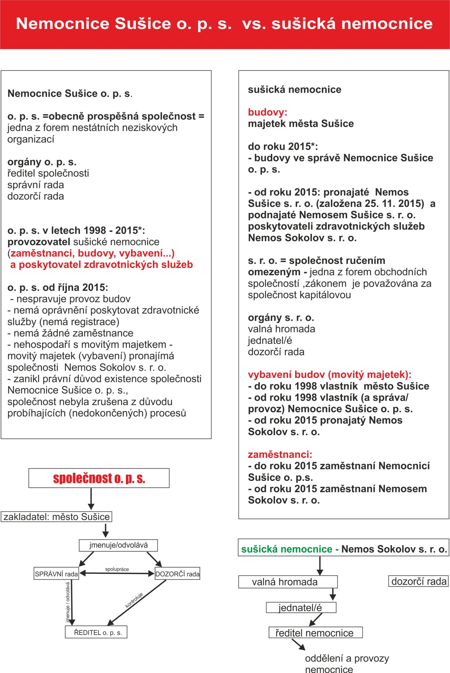 Ředitel Nemocnice Sušice o. p. s. má přímé vazby pouze na orgány o. p. s. a poskytovatele zdravotnické péče Nemos Sokolov s. r. o. v rozsahu kontroly dodržování uzavřených smluv a vymáhání jejich plnění (Nemocnice Sušice o. p. s. a Nemos Sokolov s. r. o. )