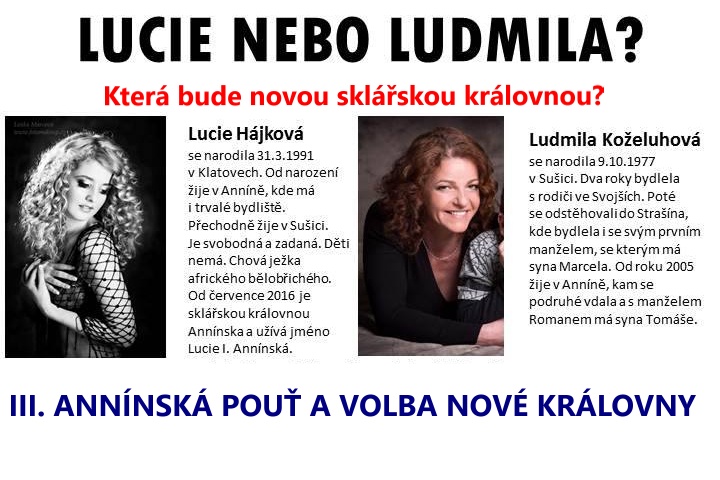 Jedna z nejdůležitějších událostí Annínského léta se přiblížila – již tento víkend proběhne III. Annínská pouť a také volba nové sklářské královny. Která z adeptek na titul si nasadí korunku? Rozhodněte!