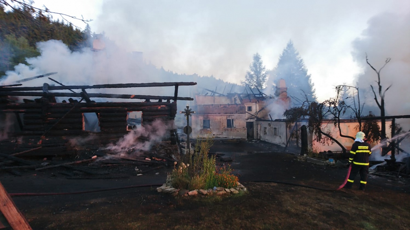 Požár památkově chráněného objektu Královácký dvorec „U Babků“ zachytila i kamera šumava.eu