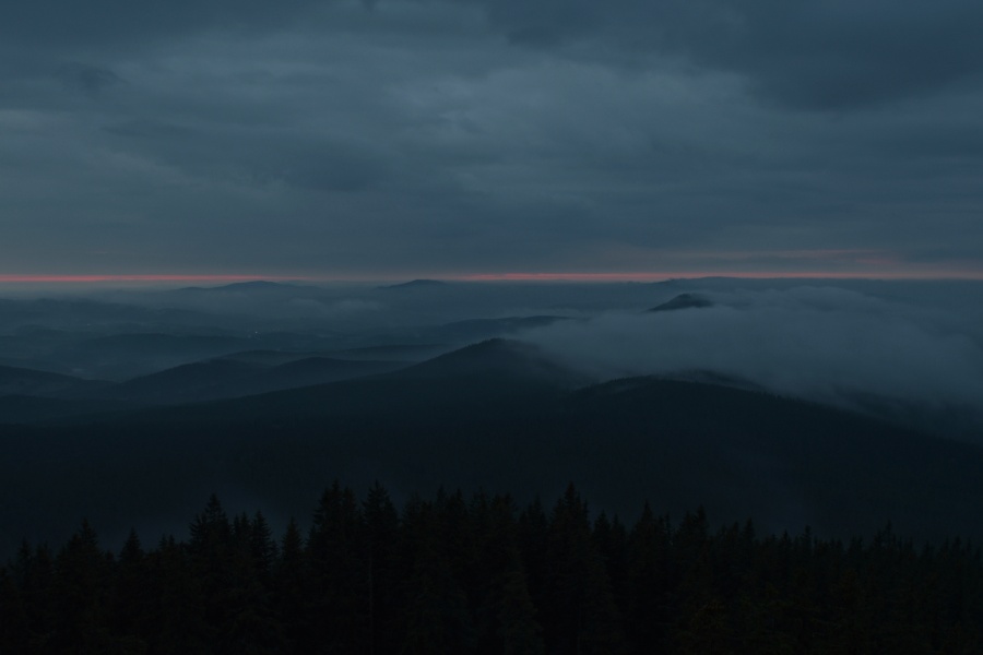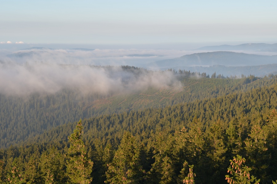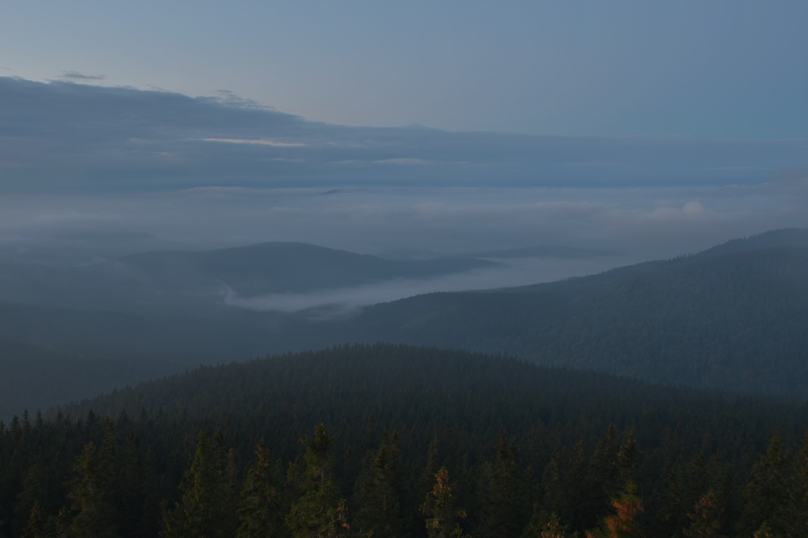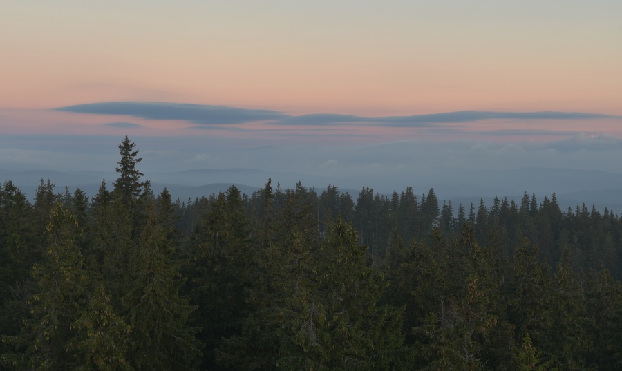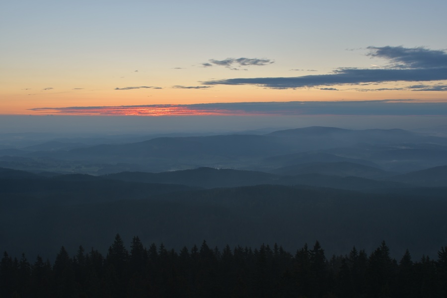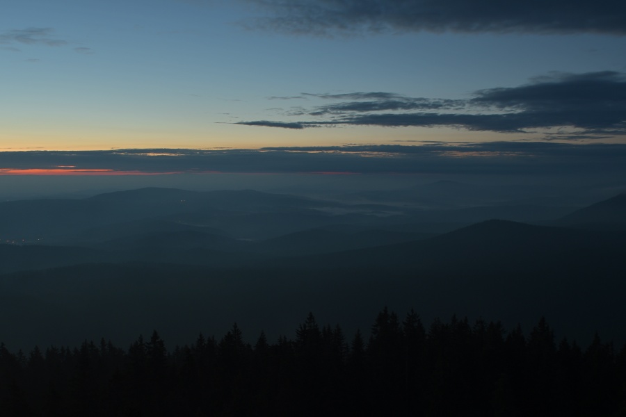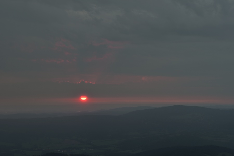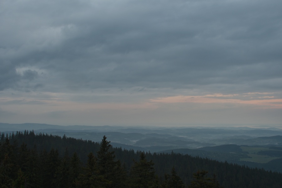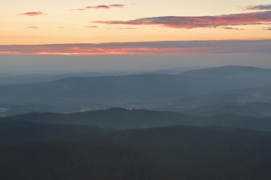 Nedávno (přesně 14. září) zde charakterizovaný průběh závěru letošního léta skutečně „do puntíku klape“. Úžasný včerejšek, který nás potěšil devětadvacetistupňovou teplotou, nalezl dnešního jitra protiváhu v hojně nasunuté oblačnosti, provázené dokonale slyšitelným západním větrem. Meteorologický radar k tomu okolo čtvrté hodiny ukazoval západně od našich hranic poměrně bohatou srážkovou aktivitu, jež se ale nad okrajem Šumavy trhala. Jednou věcí jsou však počítačová data, druhou reálná praxe. A ta se ukázala samozřejmě mnohem bohatší a zajímavější. Nad zataženou Kubovkou bylo možno občas pocítit několik osamělých kapek a časně ranní temnotu chvílemi prozařovaly výrazné blýskavice, svědčící o tom, že kdesi daleko v Německu si zrovna užívají dle všeho slušných pozdně letních bouřek. Na naší straně nebyl k zaslechnutí ani náznak hromu, čímž však není řečeno, že by se nenašel zvukový doprovod, byť zcela jiného charakteru. Stal se jím velmi intenzivní dialog dvou rozvášněných jelenů, nacházejících se vzájemně na opačných stranách boubínské cesty. S přibývající výškou slábl, ale i tak se dal zaslechnout ještě z rozhledny.