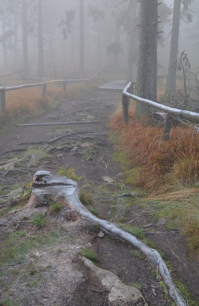V průběhu stoupání na Boubín opět houstla i mlha, …