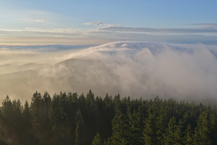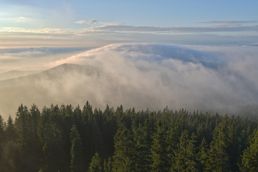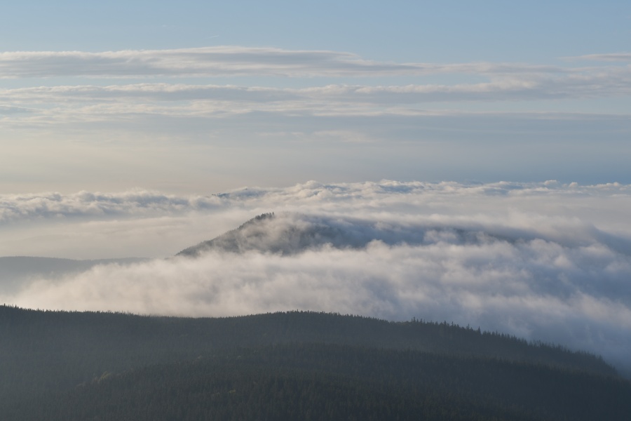 … tvořící se tu v důsledku výrazných teplotních skoků. Kdo má tento úsek Alp napozorovaný za normální situace, dobře ví, že mezi štíty Teufelsmauer (na němž momentálně vyrostly dva nové věžovité útvary) a Grosser Priel (za Plechým) není z Boubína vidět nic dalšího, stejně jako nad hřbetem oficiálně uznávané nejvyšší hory české části Šumavy.