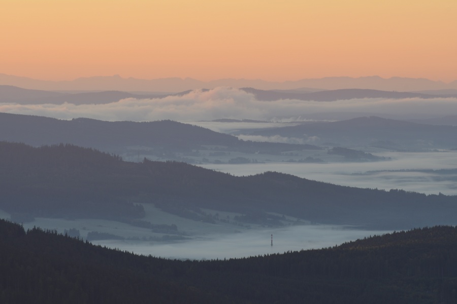 Nejednou se stává, že chceme-li si vychutnat pohledy z Boubína k Alpám, nemusíme se jich dočkat, pokud si řádně nepřivstaneme. Často totiž po východu sluníčka dojde k jejich zahalení do stoupajícího oparu. Svatováclavskému pátku tu navíc, jak dobře víme, ob jeden den předcházel výrazný teplotní pokles, takže Boubín podněcoval zvědavost i bez vidiny Alp. Nicméně je přesně v duchu výše řečeného od samého rozbřesku nabídl, …