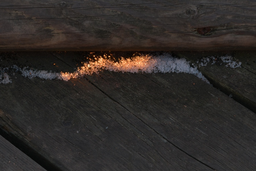 V daném ročním období už musíme počítat s tím, že slunečné a ještě relativně teplé dny budou orámovány chladnými rány a večery. Dnešní ráno bylo očekáváno ještě mrazivější nežli včerejší, které leckde na Šumavě poctivě nabílilo stále jinak bezmála letně se tvářící trávníky jinovatkou. Vimperská startovní teplota před boubínskou cestou činila sice „pouhých“ -0,8°C, ale pocitově se téměř zdála být nižší. Na Kubovce dokonce lehce povyskočila nad nulu, jmenovitě na +1,5°C, avšak s přibývající výškou opět pro změnu budila dojem poklesu, zjevně navíc vyhovujícího z lesů bujaře hlaholícím jelenům. Cesta na vrchol i po něm až k rozhledně byla vesměs pokryta jinovatkou, mezi jejímiž bělavými koberci probleskovaly v měsíčním svitu zamrzlé kaluže, a celkový pocit se dal jen těžko vyjádřit mírněji nežli jako mrazivý. Malou, leč tradiční houpačku zbývá doplnit finálním údajem, jejž teploměr ukazoval na rozhledně od uvítacího šera až do návratu: -2°C. Nutno ovšem dodat, že k pocitu chladu nemalou měrou přispíval také jižní vítr o souvislé (tedy nikoli jen nárazové) síle 7,4 m/s (26,6 km/h), doslova zalézající na každé nechráněné místo.