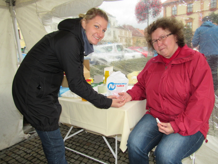 Zhruba sto lidí vyšetřili zdravotníci ze sušické nemocnice při dnešním Dni seniorů, který se konal přímo na zdejším náměstí Svobody. Při preventivní akci tu zdravotní sestry příchozím seniorům měřily tlak a hladinu cukru v krvi. Vedle toho si ze stánku sušické nemocnice odnesli kvalitní potravinové doplňky, vitaminy, léčivé čaje a různé zdravotnické pomůcky, které sponzorsky věnovalo vedení nemocnice a její provozovatel, tím je společnost Penta Hospitals CZ. Velký zájem byl také o slané zákusky, které připravily kuchařky v nemocniční kuchyni.