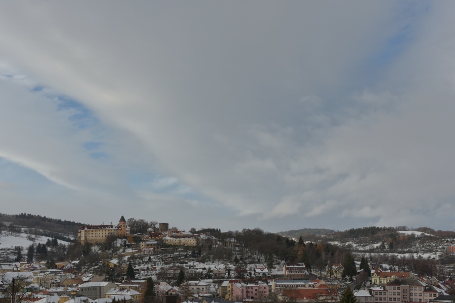 Nepřehlédnutelnou byla i práce nárazového jihozápadního větru, rychlostí 7,6 m/s (27,4 km/h) modelujícího bohatou oblačnost, …