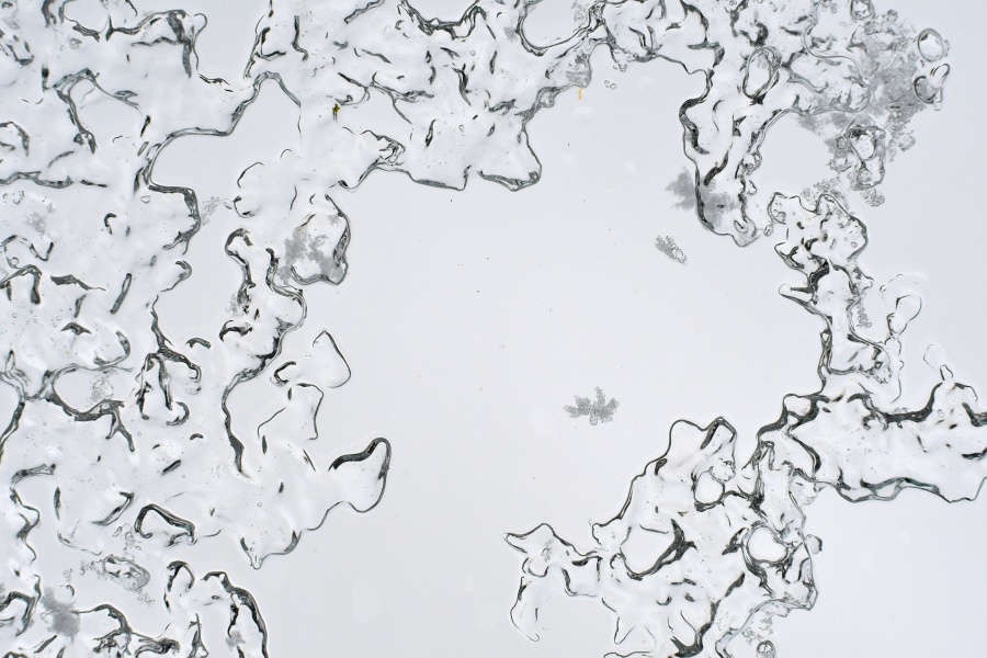 … avšak bývalo by bylo zapotřebí silnějšího mrazíku, aby si jednotlivé vločky dokázaly zachovat svou neporušenou, krystalicky čistou strukturu, jež vinou panující rovné nuly tentokrát ještě ve vzduchu dosti utrpěla.
