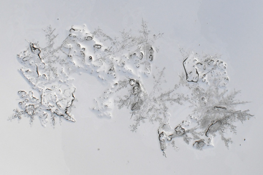 … jenže teplota stále stoupá, čímž nám skýtá příležitost rozběhnout fantazii napříč všemi proměnlivými ostrůvky, co se jich v jepičím životě na skle objeví.