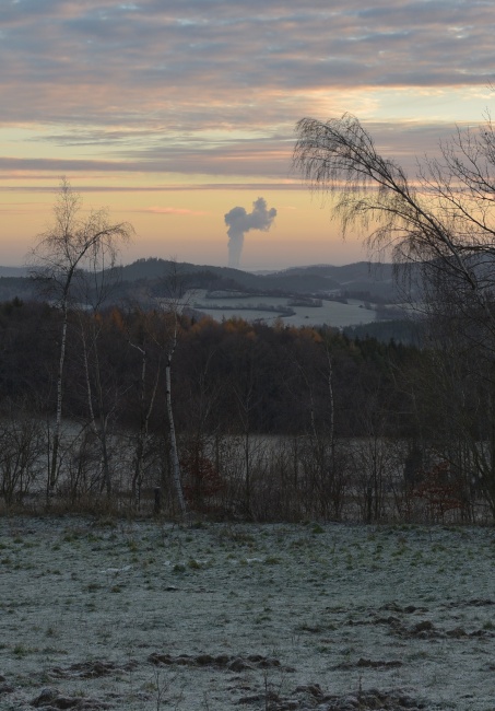 … včetně těch, které ještě mají štěstí, že momentálně nebyly pohlceny relativně nedalekou inverzní hladinou (na obzoru přizdobenou charakteristickými temelínskými parami).