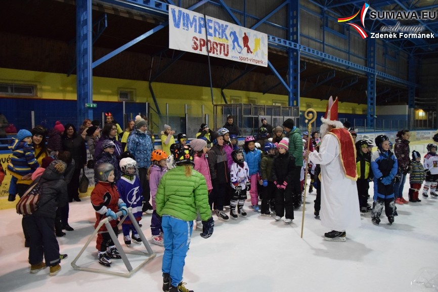 Akci Mikuláš na ledě uspořádala třída 9. B ze ZŠ TGM Vimperk. Nápad vznikl při hodinách Světa práce. Žáci si tímto způsobem alespoň trochu vyzkoušeli, co vše je potřeba k uspořádání akce. Sehnat peníze, domluvit pronájem, rozdělit si povinnosti související s organizováním soutěží pro děti, nakoupit vše potřebné na balíčky se sladkostmi, vytvořit pozvánky, plakáty, roznést je atd.