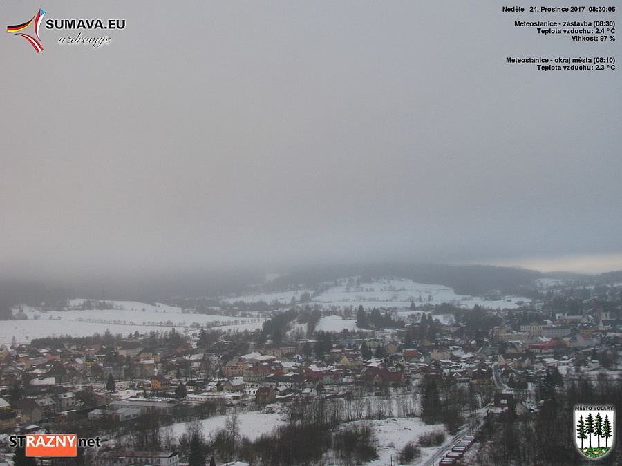 Letošní Štědrý den se přikloní k rokům, kdy sníh ve Volarech ležet nebude. Očekává se výrazné oteplení a dešťové srážky, takže sněhová pokrývka, která v současné době ve Volarech leží (5 cm k 19. prosinci), zcela jistě beze zbytku roztaje.
