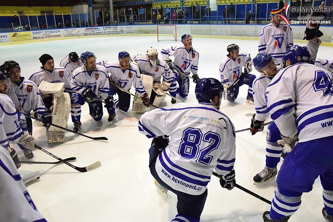 Dlouholetá rivalita mezi týmy Vimperka a Strakonic se projevila v atmosféře vytvořené zaplněným hledištěm a také vyrovnaností boje, ve kterém si soupeři nedarovali nic zadarmo. Nástup patřil domácím, kteří si vybudovali třígólový náskok, ale houževnatí hosté srovnali, přestože museli míchat sestavou kvůli zraněním útočníků Křenka a Müllera. Vimperští šli znovu do vedení při pětiminutové přesilovce v závěru druhé části a diváci už se nedočkali dalšího gólu. „Po nadstandardním úvodu z naší strany se ve druhé třetině otočila situace. Naštěstí jsme si dokázali pohlídat závěr,“ ulevil si asistent Pavel Předota. „Srážela nás nedisciplinovanost,“ věděl strakonický manažer Roman Heimlich.