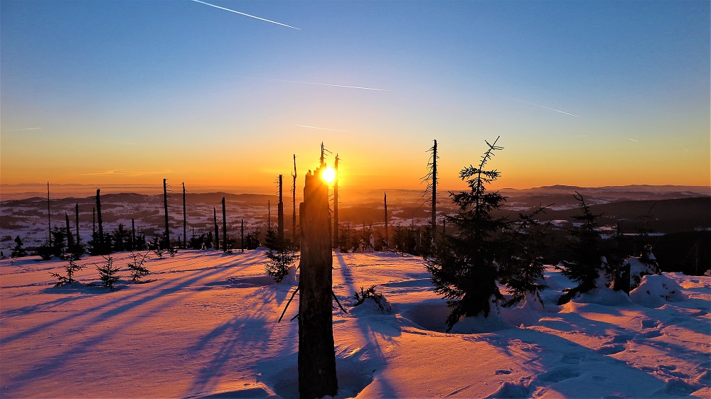 Hřebenovka Třístoličník se západem slunce