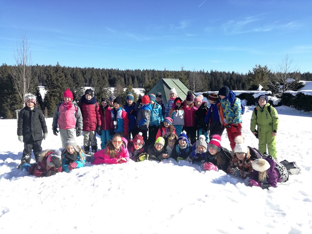 Dne 15. 2. nás opět po roce přijela navštívit partnerská škola z Grafenau, s níž jsme zapojeni do projektu „Dva jazyky-jedna myšlenka“. Dopoledne jsme si užili na sněžnicích na Horské Kvildě. Pro mnoho žáků z obou škol to bylo poprvé, kdy si chůzi na sněžnicích vyzkoušeli. Počasí nám opět přálo, takže procházka po okolí Horské Kvildy s interaktivní přednáškou, při které se děti dozvěděly mnoho zajímavostí o šumavské přírodě, rychle utekla. Odpoledne pak patřilo hrám a aktivitám v DDM Vimperk na podporu interakce mezi dětmi, tematickým úkolům či přípravě odpoledního občerstvení. Aby měly děti na společně strávený den památku, vyrobily si všechny pod vedení paní Kubišové krásné tašky a naučily se zajímavou výtvarnou techniku – tupování na textil.