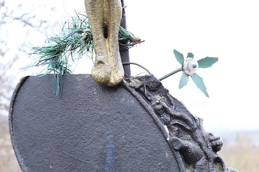 Sedáme si na lavičku ke stěně, ale přibíhá dotěrný psík. Nevyznám se v psích plemenech, říkáš, že je to pražský krysařík. Štěká ostře, je na nás zvědavý, nahlíží do kaple bázlivě i drze jak nějaký pohanský ratlík. Bereš na něj koště, kterými byly dveře zapřené, a které teď za sebou zavíráme.